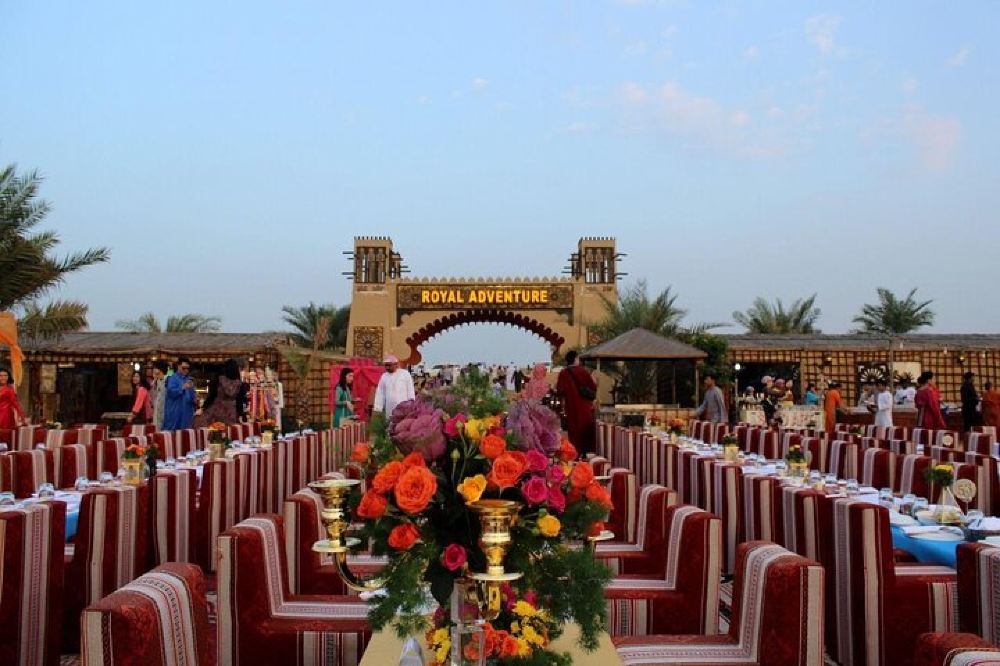 ▲ Enjoy a grand outdoor dining experience with traditional Arabic seating under the open sky, surrounded by the ambiance of the desert and warm Arabian hospitality.