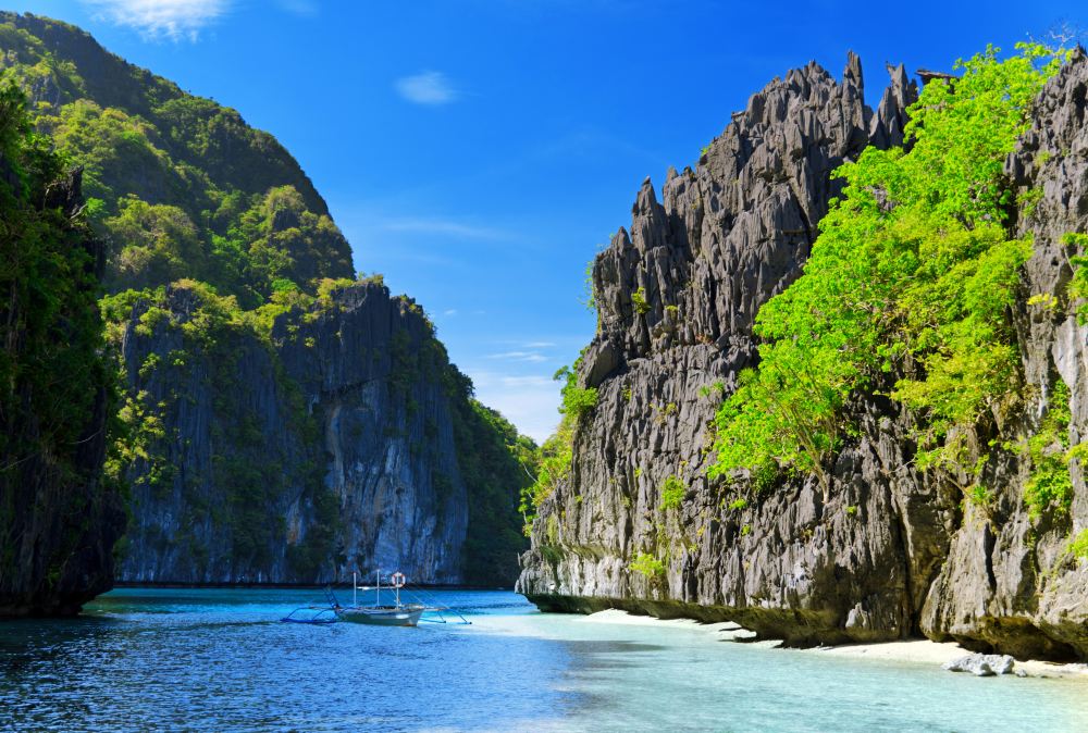 ▲The majestic limestone cliffs of El Nido, rising dramatically against the azure sky