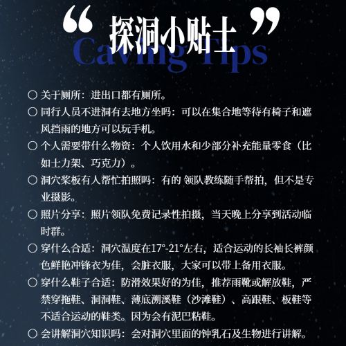 ⑤ The team leader will contact you one day before the cave exploration to confirm the arrival time for the next day. Please be sure to answer the call.