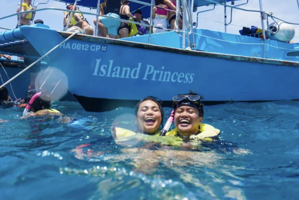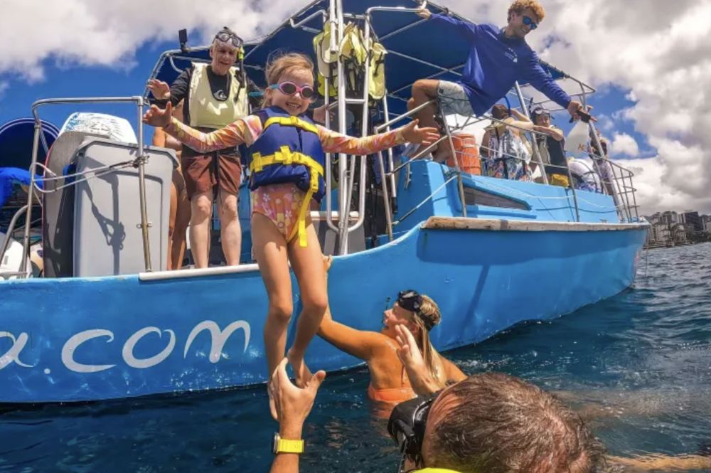 ▲ Your crew is happy to snap some pictures of you along the way. Once you arrive at Turtle Canyon, the crew will assist you as you jump into the water and lead you toward turtles and other marine life!