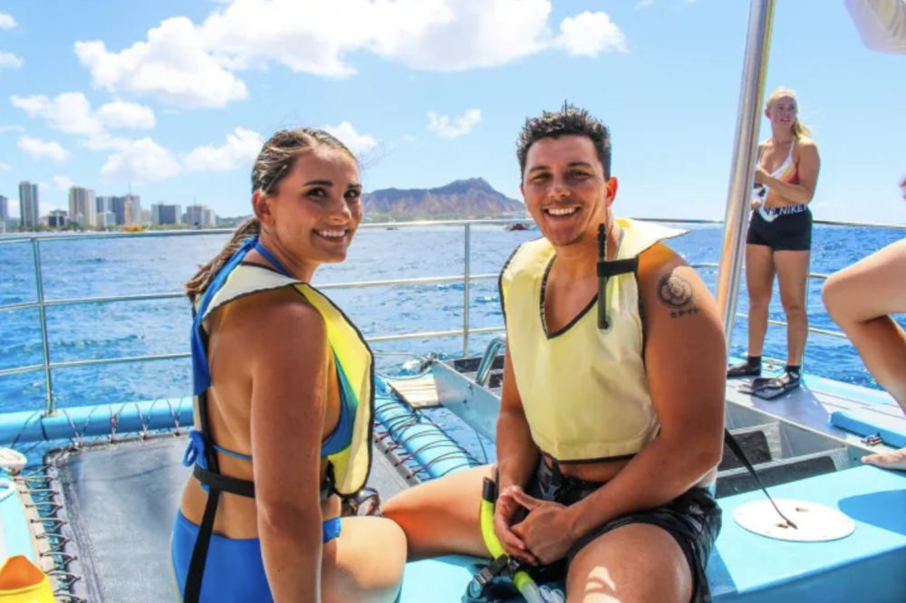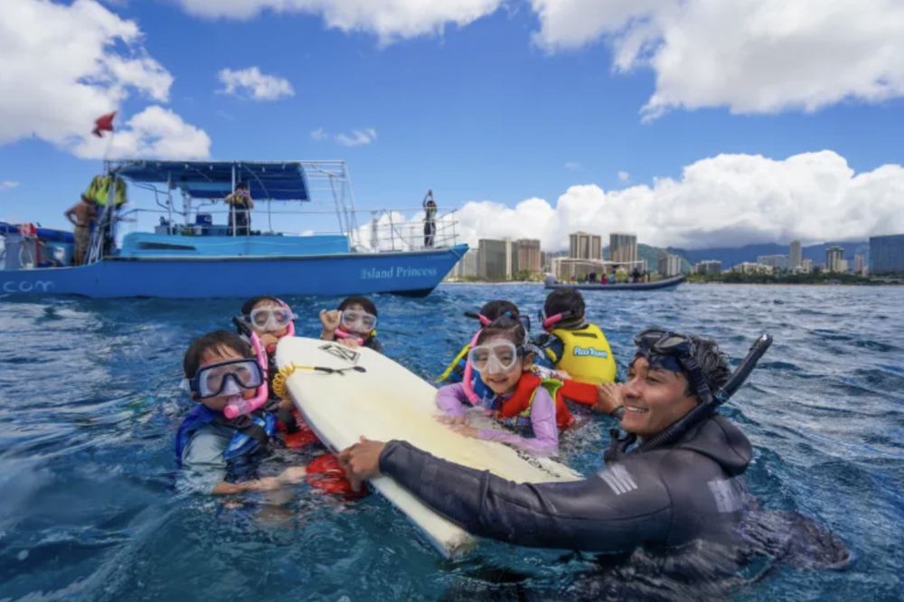 ▲ Next, they will pass out gear and get you ready to hop into the ocean! On your way to the snorkel location, admire breathtaking views of Diamondhead and the Waikiki shoreline.