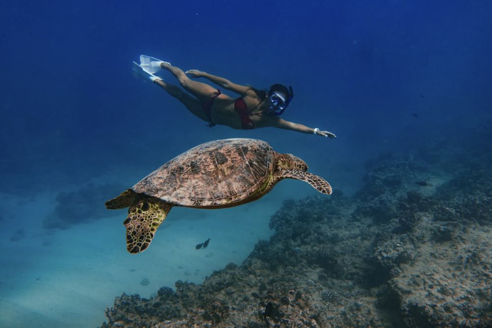 ▲ Enjoy as Turtles get their shells cleaned by the fish and cruise along the reef!
