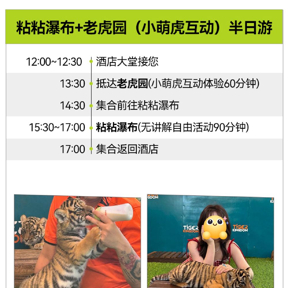 Children: Height must be over 130cm (Children under 130cm can purchase the Little Golden Tiger Cub package with a surcharge of 450 THB per person, and require one adult to also purchase the Little Golden Tiger Cub package to accompany the child for entry).