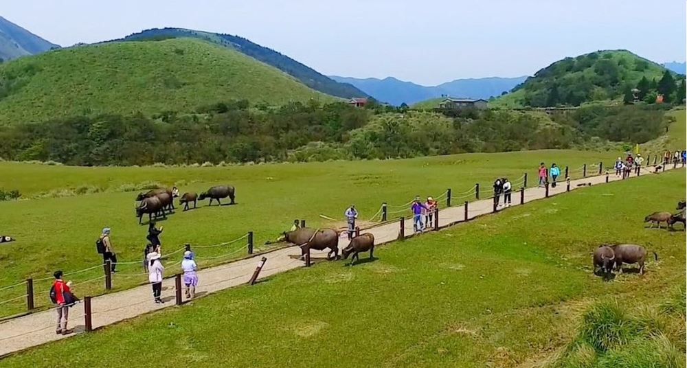▲ Located in Taiwan's Yangmingshan National Park, Qingtiangang is a lava terrace formed by the northward eruption of lava from Penny Mountain in the Datun Volcanic Group. The foster buffaloes from the past ranching era are breeding on site. Some of the buffaloes that were not brought back are breeding naturally in the areas of Qingtiangang, Huangzuishan, and Dingshan-Shitiling. Three herds of ownerless feral buffalo have now been formed, undergoing the test of natural selection on site. The population size fluctuates with weather and environmental conditions. The feral buffaloes have a strong sense of defense. If tourists get too close, even touch or tease them, they may attack by butting when they feel their safety is threatened or their calves may be in danger. To avoid accidents, please read the /Tourist Service /Tourist Notices and Prohibitions and on-site signs in detail.
