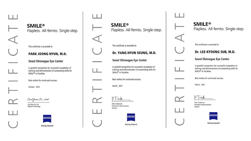 * The medical team at SEOUL SHINSEGAE EYE CENTER has completed specialized training on the ZEISS SMILE technique.