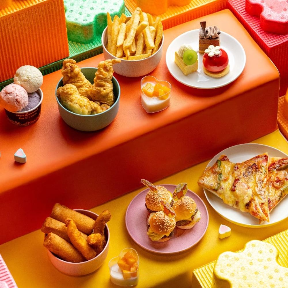 2. Children's buffet counter: fried chicken wings, fried chicken thighs, fried fish fillets, mini burgers, and french fries