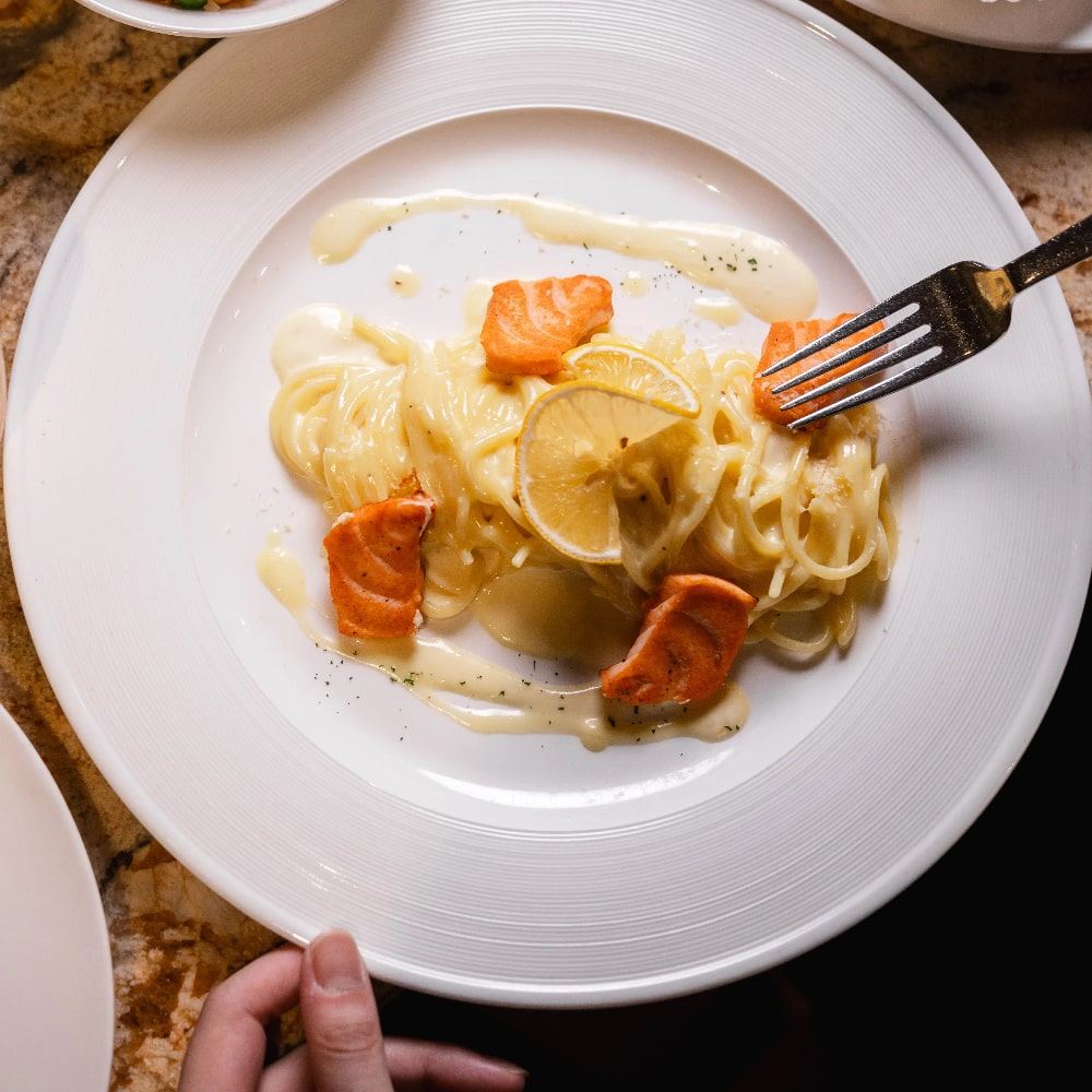 Live cooking: steak, yellow croaker, lamb chops, and tableside wheel cheese pasta.