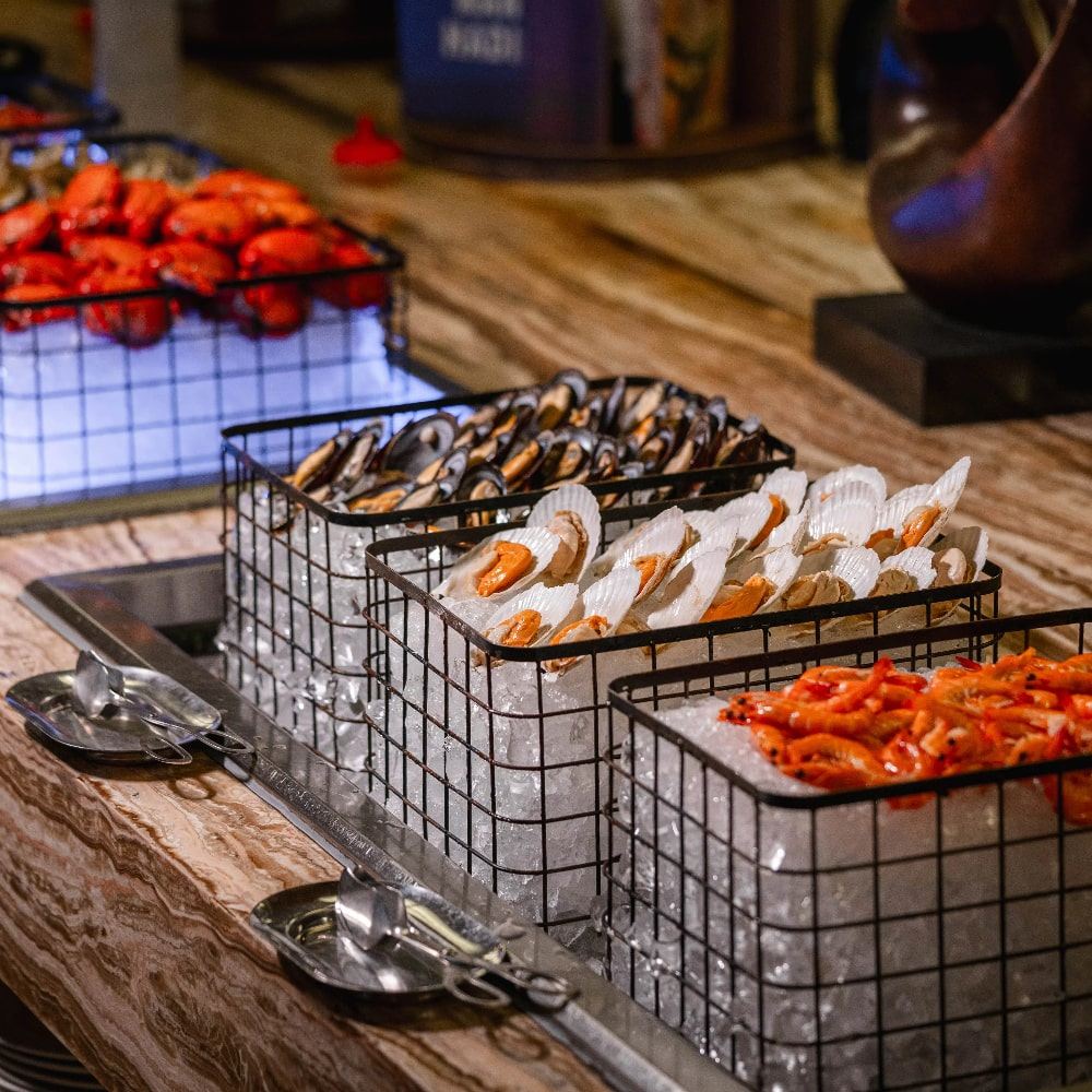 2. Chilled seafood: shrimp, green snail, mussels, tiger crab, and white clams