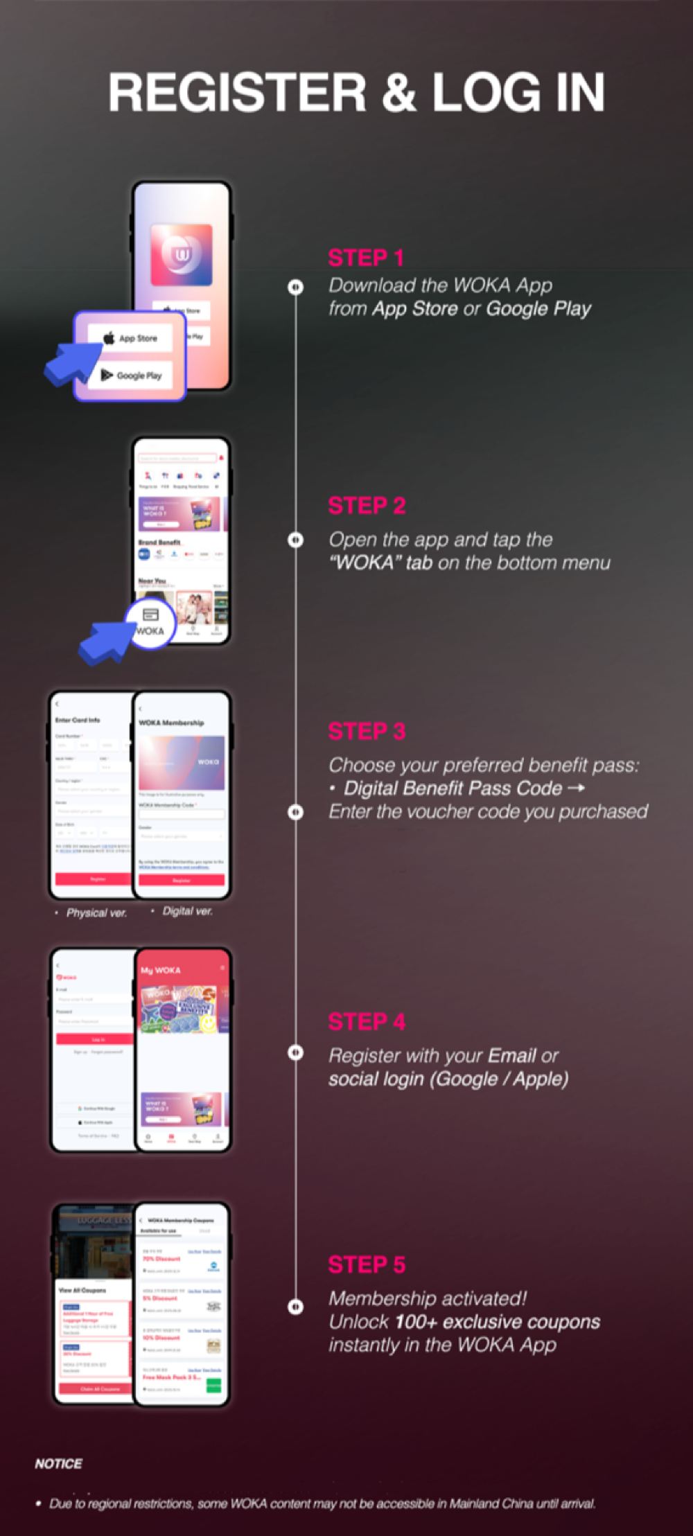 E-code issued upon booking | Bind to WOKA App for immediate use, no physical card required