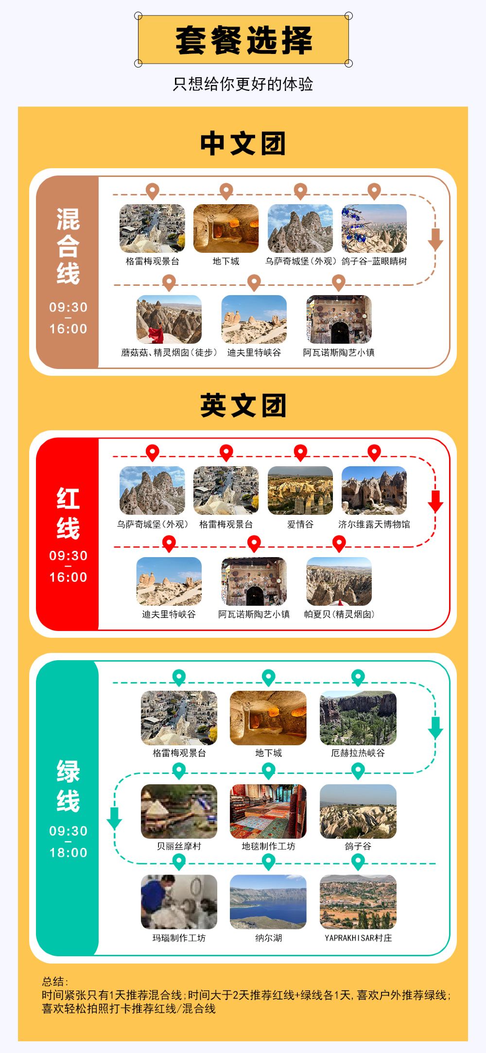 Multiple route options: Choose from the Red Tour, Green Tour, or Chinese Mixed Tour for your 1-day tour in Cappadocia.