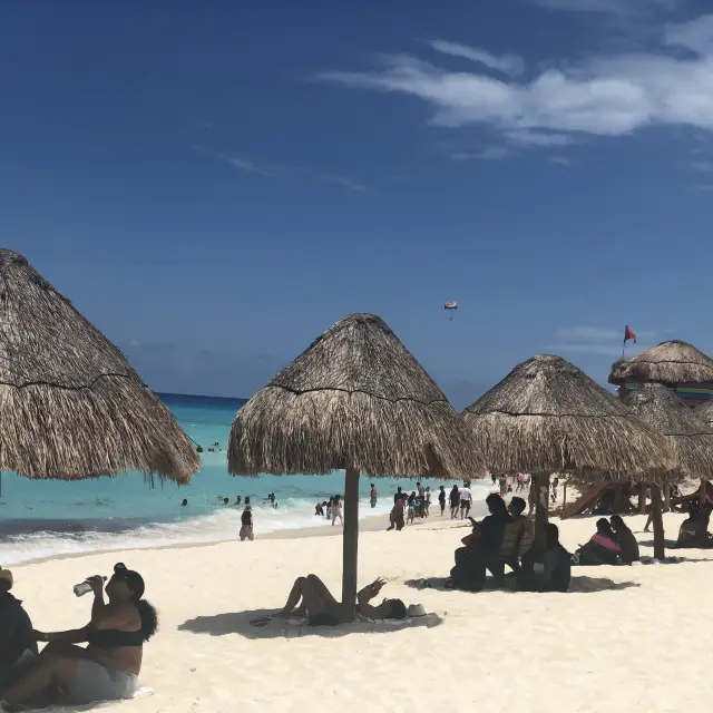There are quite a lot of beaches in Cancun. After all, it has the longest coastline. This is a public beach, so there are quite a lot of people coming here. It is very convenient to walk or take a car from the hotel area. The security here is usually quite good. There is also a large shopping mall nearby, which is a central location.