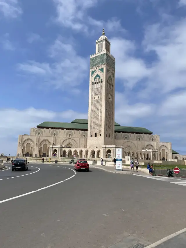2025.5.11 Hassan II Mosque At 9 o'clock this morning, I came to Hassan II Mosque and needed a ticket to enter. The mosque was built in 1987 and is located in the northwest of Casablanca, the Kingdom of Morocco, at the westernmost end of the Islamic world. One-third of the mosque was built on the sea to commemorate the Arab ancestors of Morocco coming from the sea, costing about 500 million US dollars. The first thing we saw was a huge square with a pool. Behind it stood a tall minaret and mosque building. Take off your shoes and enter the mosque. The buildings inside are symmetrically distributed, with elegant and simple decorations. The entire mosque can accommodate 100,000 people praying at the same time, making it the third largest mosque in the world. There are skylights on the top floor of the mosque that can be moved in parallel for ventilation, and there are also floor heating equipment on the ground, which is quite modern. The maritime tower of the port can be seen outside the temple. There is a peaceful, quiet and simple atmosphere in the whole mosque. There is no gold and silver decoration, and there is no pursuit of luxury. Several tour groups came here to visit, and you can hear the voice of the tour guide and the gentle exclamations of tourists. We admired the exquisite architectural decorations in the temple, took some photos from different angles, and waited for a while in a corner, leaving behind the world's chaos and emptying our minds.