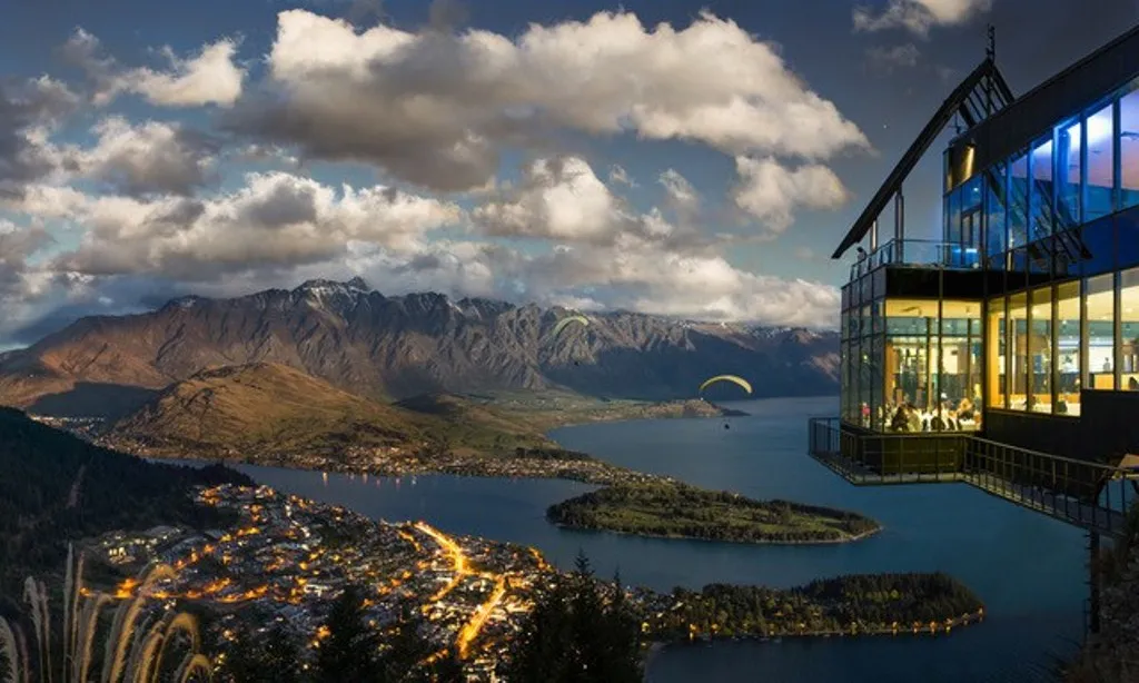 Taking the Sky Gondola + overlooking Bob Peak is the first choice for many tourist projects in Queenstown. Bob Peak is on the north side of Queenstown, and the Sky Gondola is on the south slope of Bob Peak. The lower station of the cable car is 340 meters above sea level and is located on the north side of the commercial district in the center of Queenstown; the upper station is 790 meters above sea level and is located in an open area on the south slope close to the top of the mountain: the track elevation is 37.1º, which is the steepest cable car track in the Southern Hemisphere. Walk north from Leith Street for 10 minutes, climb the 30-meter-high white Bob steps, and you will arrive at the lower station of the cable car. Sit in the spacious and bright 4-seater cabin. As the height and perspective change, the scenery gradually moves away and the scenery becomes more and more beautiful. After 8 minutes of comfortable and smooth operation, you will arrive at the upper station of the cable car. The upper station of the cable car is connected to the Sky Gondola Restaurant. On the outer edge of the second floor of the restaurant, there is an L-shaped sightseeing corridor and several protruding viewing platforms. Standing on the viewing corridor and viewing platform, you can enjoy the beautiful scenery of Lake Wakatipu and Queenstown from 270°. Looking south, you can see beautiful scenery from far to near. In the distance, the Remarkable Mountains are undulating and majestic. In the near distance, the roads in Queenstown are crisscrossed and the roofs are lined up. At the junction of the near and far, the two peninsulas (Queenstown Golf Course and Queenstown Gardens) and the two bays (Queenstown Bay and Frankton Bay) on the surface of Lake Wakatipu are clearly visible. The sparkling lake, the green peninsula, and the winding and elegant coastline constitute the most beautiful picture of Queenstown and Lake Wakatipu. The photos taken are representative works of New Zealand's beautiful scenery.