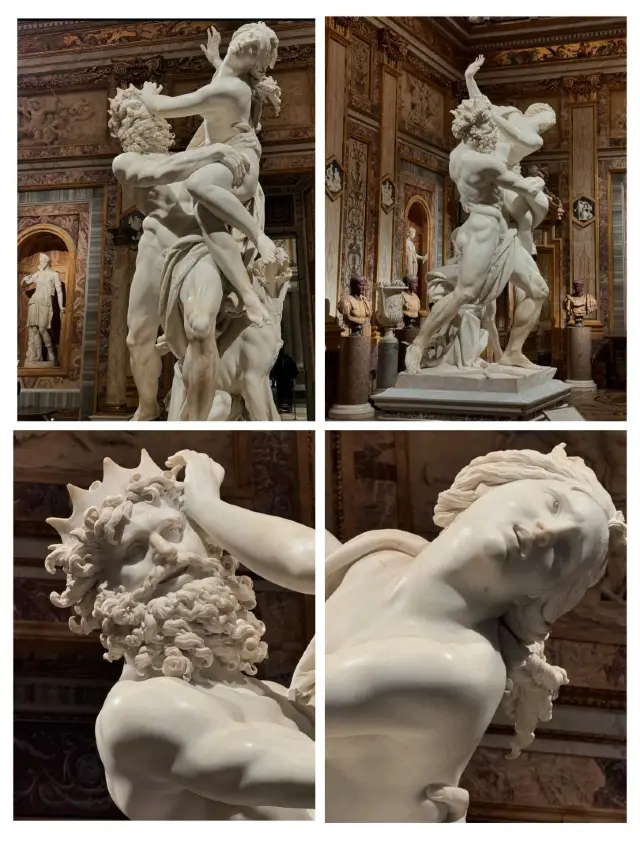 The moment I stepped into Galleria Borghese, sunlight streamed through the high windows onto the sculptures. Apollo and Daphne stood at the center of the hall, light catching on her fingertips as they transformed into laurel leaves. Her toes still touched the human world while her hair had already become branches. I remembered Bernini created this masterpiece in his early twenties—that delicate perception of life's transformations makes even Time itself feel inadequate.
