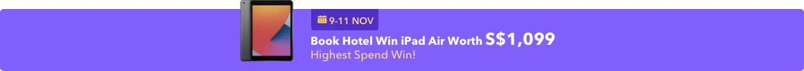1) Book hotel during 9~11 Nov, highest spend for hotel order will won prize (10.9-inch iPad Aid Wi-Fi 256GB - Space Grey).